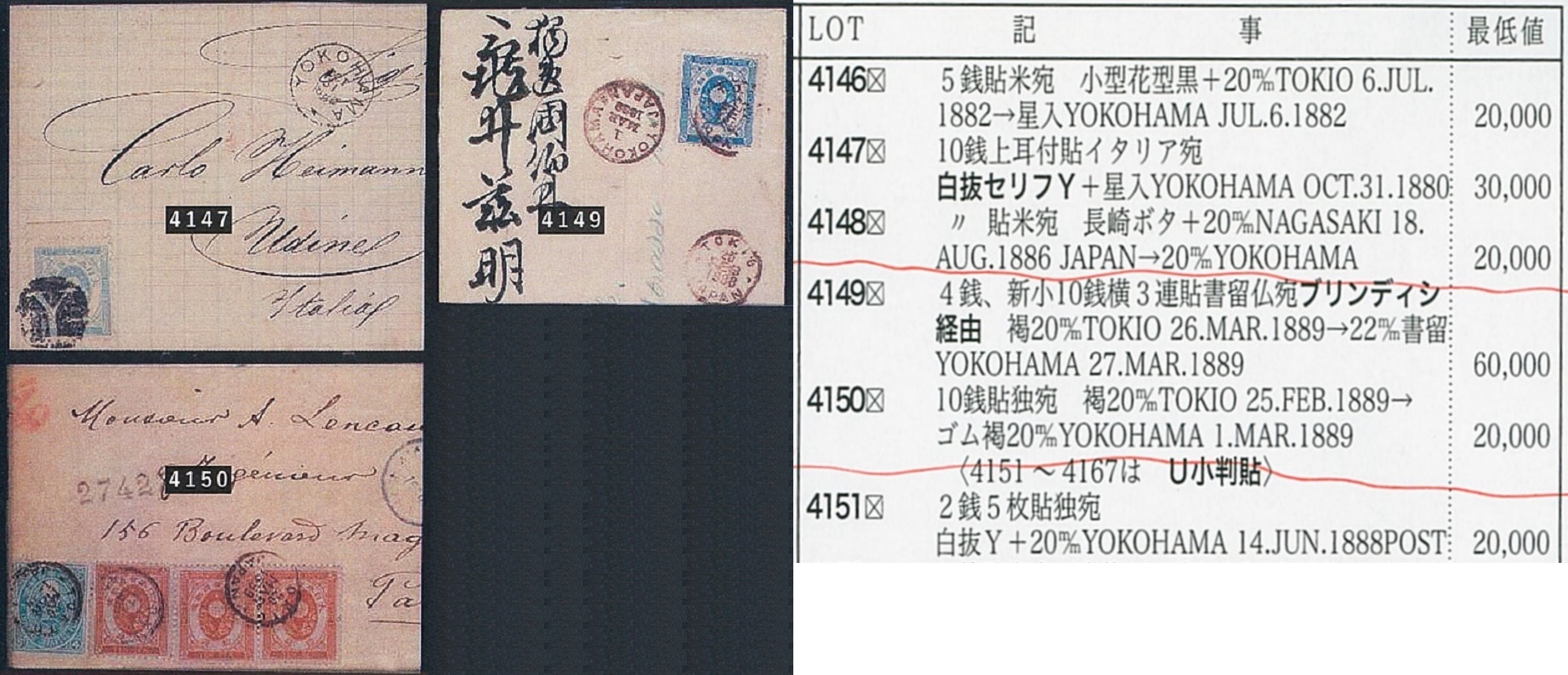 開催中の12月のセール=PA140回でミスが発生しました。4149と4150で写真が入れ違っています。このケースでの処理は、一つしか有りません。規定の一番上に書いてある通りに、【記事と写真版が相違した場合、記事を優先します】が全てです。ミスをしたのは弊社ですが、これは少なからず起こります。それ故に共通ルールとして、記事を優先してセールを続けるしか無いのです。記事の4149=最低値60000円は、写真版では4150=最低値20000円ですが、実際のセールに於いては、最低値と応札値から判断して、写真版を参考にされてのビッドだと確信を持った場合でも、何らの救済措置は講じません。記事の番号に対してのビッドとして機械的に扱わざるをえません。